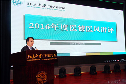 一年一度的医德医风讲评大会早已形成了北大口腔医院特色文化的品牌。2016年11月23日,北大口腔医院2016年度医德医风讲评大会在教学楼报告厅如期举行。