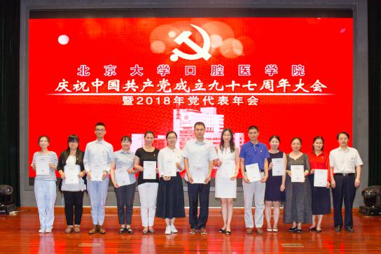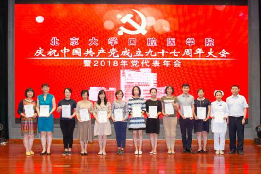 6月27日下午,北京大学口腔医院党委在教学楼报告厅召开庆祝建党97周年大会暨2018年党代表年会。全体院领导、两委委员、党支部书记、党代表、师生党员、入党积极分子以及受到表彰的先进集体和优秀个人等参加大会,会议由党委副书记张汉平主持。