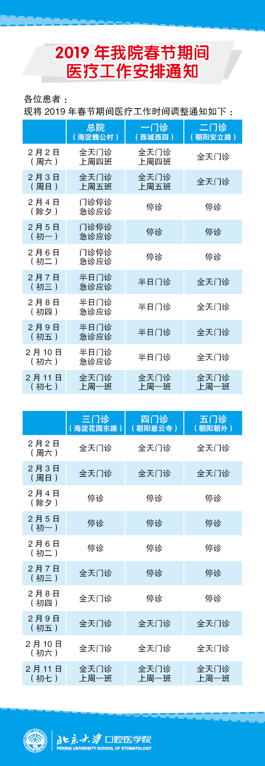 2月 4日(周一,除夕)~2月6日(周三,初二) 节日放假,门诊停诊,急诊应诊