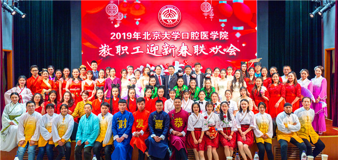 表彰会之后,职工迎新春联欢会正式开始。在充满活力动感的舞蹈《寄明月》之后,郭传瑸院长和周永胜书记等院领导登台向全院教职员工集体拜年、致新春贺词,感谢北大口腔人为医院发展所付出的努力,祝福大家新春愉快,并希望大家一起继续奋斗,建设北大口腔更加美好的明天。接着各科室用舞蹈、歌曲、朗诵、小品、服装秀等方式向观众倾情呈现了17个精彩节目。节目形式活泼新颖、内容健康向上,演员们精神饱满、舞姿优美,生动地展示出了口腔医院教职工阳光向上、朝气蓬勃的精神风貌与情怀。最后,在《我的祖国》气势磅礴的舞蹈中,大会圆满落下帷幕。联欢会营造了轻松、欢乐的氛围,增进了职工间的交流和友谊,更表达了全体教职工对祖国、对医院美好明天的祝福和期盼。