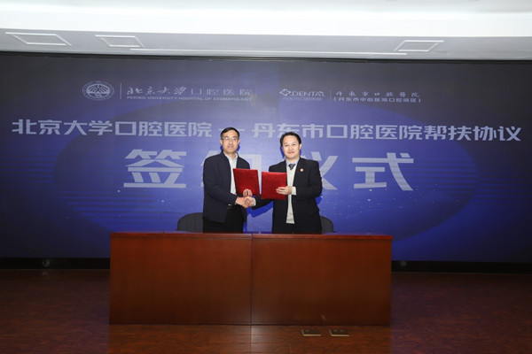 2019年12月1日,我院周永胜书记、许向亮副主任医师一行,与丹东市中心医院签署对口帮扶协议。恰逢京城与丹东共迎初雪,但窗外的寒意抵挡不住两院交流的热情。丹东市卫健委副主任刘城、丹东市中心医院院长宋惠武、副院长黄鑫、丹东市口腔医院副院长姜浩强以及殷丽珺等领导出席签约仪式。