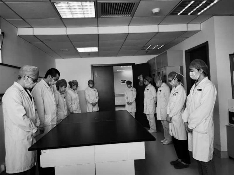 4月4日上午10时,全国下半旗、各地人民静立默哀,向新冠肺炎疫情牺牲烈士和逝世同胞志哀,汽车、火车、舰船与防空警报同时鸣响。北京大学口腔医院各科室在岗医务人员、就诊患者及家属,放下手中的忙碌,驻足默哀、寄托哀思。