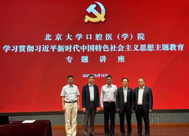 党委书记周永胜作总结发言,他首先对闫茂旭研究员百忙之中为大家带来精彩讲座表示衷心感谢。他表示,习近平新时代中国特色社会主义思想为推进中国式现代化提供了根本遵循。希望通过本次主题教育辅导讲座,全体领导、中层干部和广大师生,可以以学铸魂,牢牢把握主题教育“学思想、强党性、重实践、建新功”的总要求,在学思践悟中汲取矢志不渝的理想信念,进一步深刻领悟“两个确立”的决定性意义,更加自觉增强“四个意识”、坚定“四个自信”、做到“两个维护”。全体北大口腔人要切实将开展主题教育与认真贯彻落实习近平总书记重要指示批示精神,尤其是习近平总书记关于教育、科技、人才、健康中国等重要指示精神结合起来,贯彻新发展理念、构建新发展格局、推动高质量发展,扎根中国大地建设世界一流学科,在助力推进中国式现代化新征程上贡献北大口腔力量。