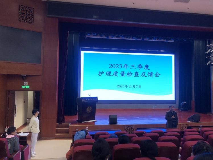 为及时发现和解决临床中的护理问题,有效推进各项护理工作落实到位,2023年11月7日下午,护理部在教学楼三层报告厅开展了“2023年三季度护理质量分析汇报会和不良事件讨论会”。蔡志刚副院长、全体护士长及部分护理骨干参加了会议,会议由杨悦主任主持。