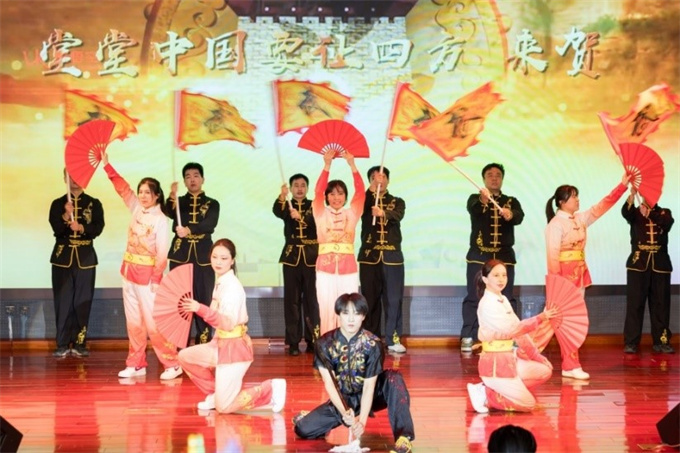 5、4、3、2、1,全场灯光亮起,财务处、审计室的首个节目《精忠报国》拉开了新年联欢的序幕。他们身着武术服装,将舞蹈与武术融合,刚柔并济,用新时代青年人的热血壮志,点燃了台下观众的热情,气势磅礴的演出激荡着浓烈的爱国情怀。