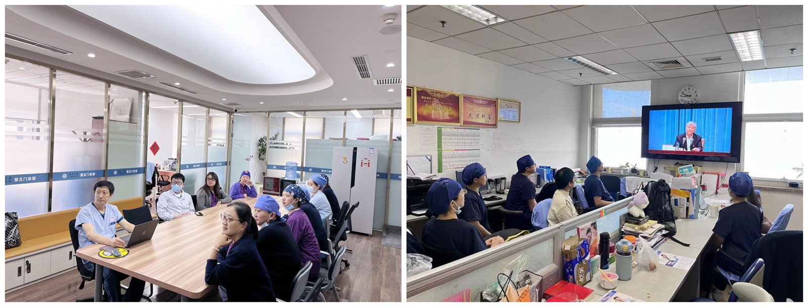 北京大学口腔医院党委委员、纪委委员、党支部正副书记和支委、光荣在党50年党员代表、全院近800名党员分别在党员之家会议室、教学楼报告厅、医疗楼大会议室、五个分支机构、科研楼、发展大厦等14个分会场共同参加集体学习。