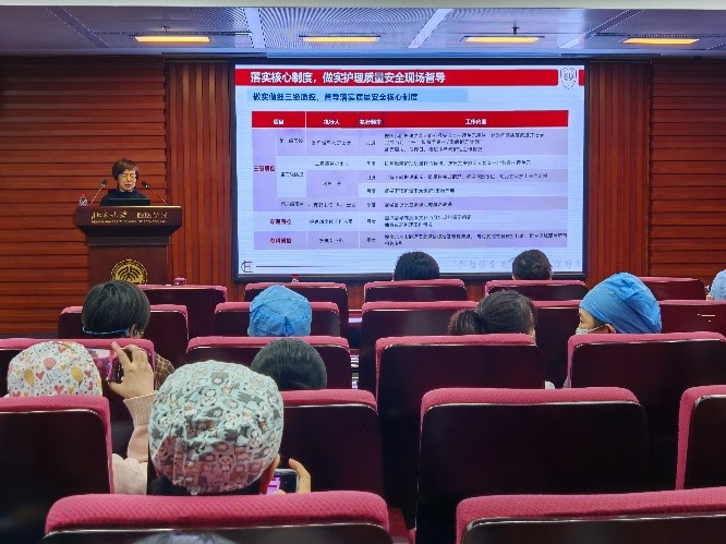 护理精细化管理是通过对护理流程、操作规范、护理质量等方面的精细化管理,提高护理质量和效率的管理理念和方法。2024年11月22日,护理部邀请北京大学人民医院护理部张海燕主任就“护理质量精细化管理”为题为我院护理骨干进行专题讲座。护理部主任杨悦,副主任胡菁颖、杨国勇和临床科室护士长及护理骨干共60余人参会。