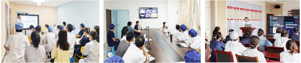 第三批医疗队深入宝鸡市口腔医院各临床科室开展针对性的技术指导,通过多层次、系统化活动夯实人才根基。在儿童口腔中心,王丹主治医师完成高难度手术并讲解操作与护理要点;正畸中心在郭润智主治医师带领下,围绕“拔牙矫治前牙内收”研讨,提升科室临床水平。毋育伟副主任医师、胡哲文副主任医师在修复科和种植科分享“无牙颌种植修复数字化技术”,展示口内扫描技术优势,通过案例与实操推动技术提升与创新。此外,司马梓涵主治医师聚焦显微根尖外科手术规范操作与美学修复,以案例解析强化牙体专科实战能力。